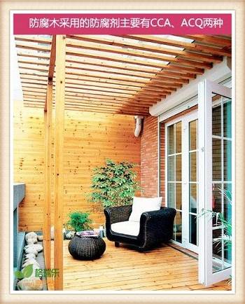 防腐木采用的防腐劑關系到其環保性,因此有必要了解一下。防腐劑主要有CCA、ACQ等。CCA主要成分為銅硌砷,ACQ主要成分為氨溶烷基胺銅。